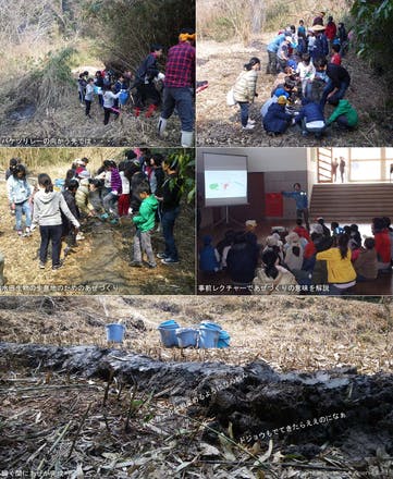 2017/04/06 17:402017.03.19 奈良市青少年野外活動センタとのコラボ企画として、当基金が大柳生地区で進める自然再生事業を実際に体験頂ける機会を設けました奈良市環境教育フェスタ(2017.02.12)を受けてのアンコール企画です 小学校低学年×25名、学生を中心に大人×27名が参加。自然再生サイトに突如15mを超えるバケツリレーの列が出現しました泥を堀り、バケツをリレーし、堤を積み上げ、あぜを塗り、瞬く間に約6mのあぜが完成です 参加者は全員、これが生きものたちの棲処を創るための作業の一環であり科学的な理論に基づく手段である、というレクチャーを事前に受けていますその甲斐あってか、子供たちからは「これでカエルが卵産めるようになんねん」「ドジョウもでてきたらええのになぁ」といった発言が口々に聞かれ、生きものたちのためにという動機付け、目的と手段、或は、理論と実践の関係性についての意識付けが図られているようすが伺われます加えて、土に触れる・生きものたちのために何かをするというのは、大人たちにとってもなかなか経験できない体験だったそうです もっと見る