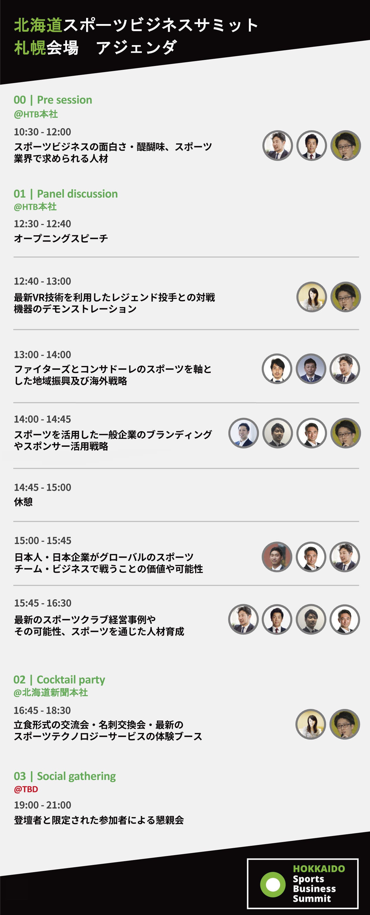 日本のスポーツイノベーターがスポーツの可能性を語り合う、スポーツビジネスサミット 《SBS》 が北海道の札幌/旭川で開催決定!札幌開催のイベントを東京サテライト会場でもライブ中継予定です。東京サテライト会場の参加者を募集します!(最低20名集まれば開催予定です。)更に、北海道をスポーツの力で盛り上げるべく、本イベントを応援したいという方は、是非ご支援をお願いできますと幸甚です。頂いたご支援は登壇者の交通費や当日の運営費に充てさせて頂きます。