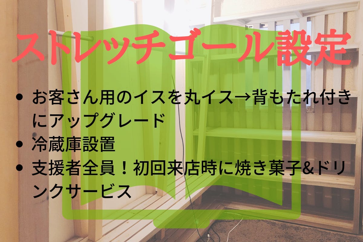 アップした費用は、来店されたお客様が座る椅子をアップグレード、冷蔵庫設置、さらにさらに、支援者全員、初回来店時に焼き菓子とドリンクをサービスさせていただきます!!