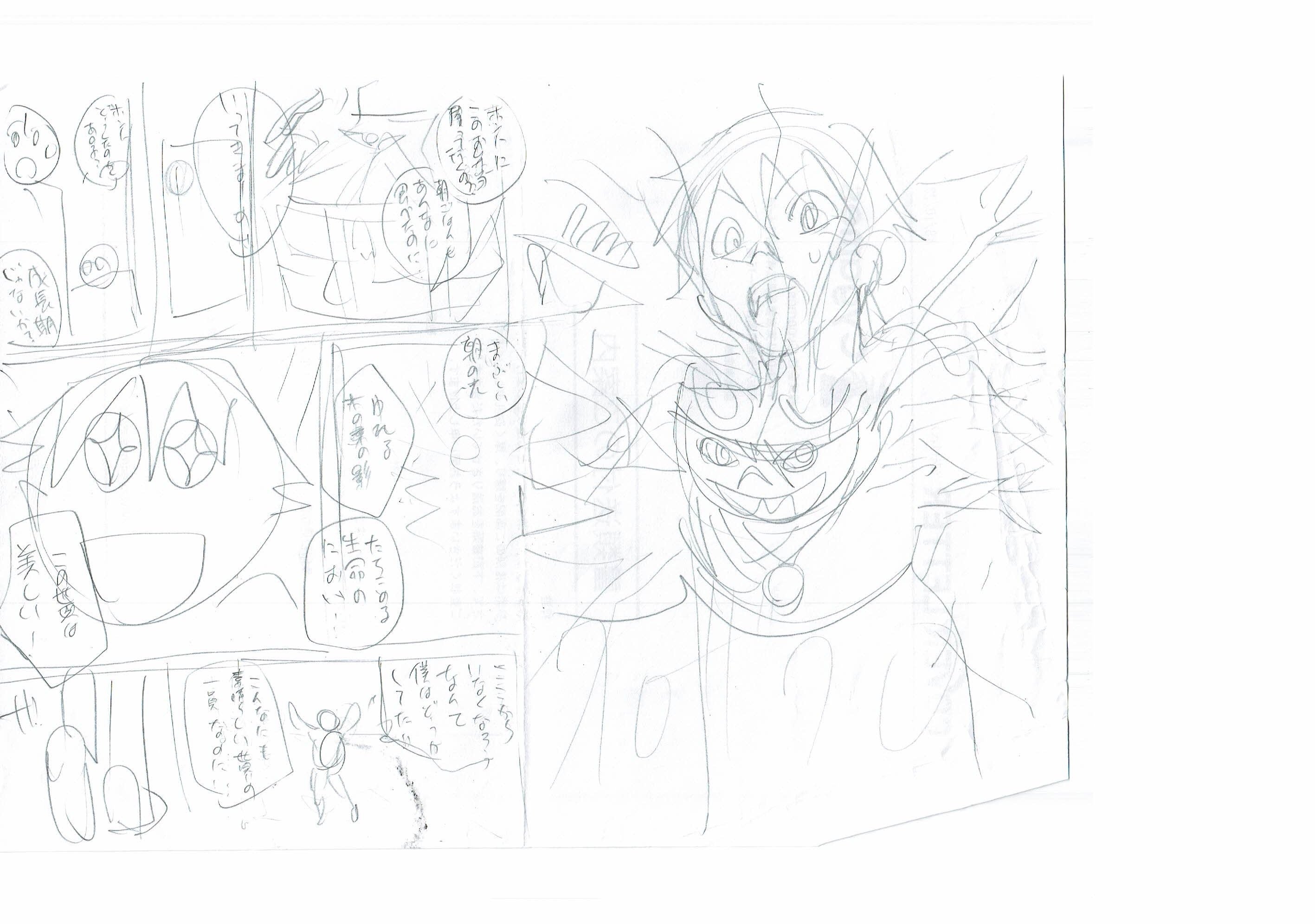 せっかくですので、今回追加しようと考えているネームの一部だけ公開します。いつもネームは未練を残さないように適当な裏紙を使用しているため読みづらくなっていますが、雰囲気だけでも掴んでいただけると嬉しいです。