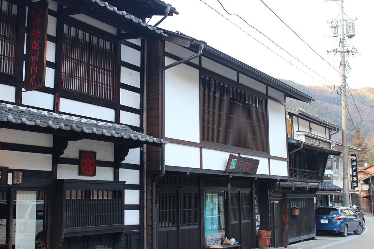 (漆器店が立ち並ぶ、木曽平沢)