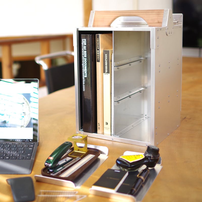 「オカモッティ」は、仕事以外でも大活躍。文房具や書類だけでなく、趣味のグッズの保管庫としてもピッタリです。アルミ製のクールな外観で、そのままディスプレイしてもカッコイイ。コレクションがフロントスライドドアから出てくる様は、まるで秘密基地です。
