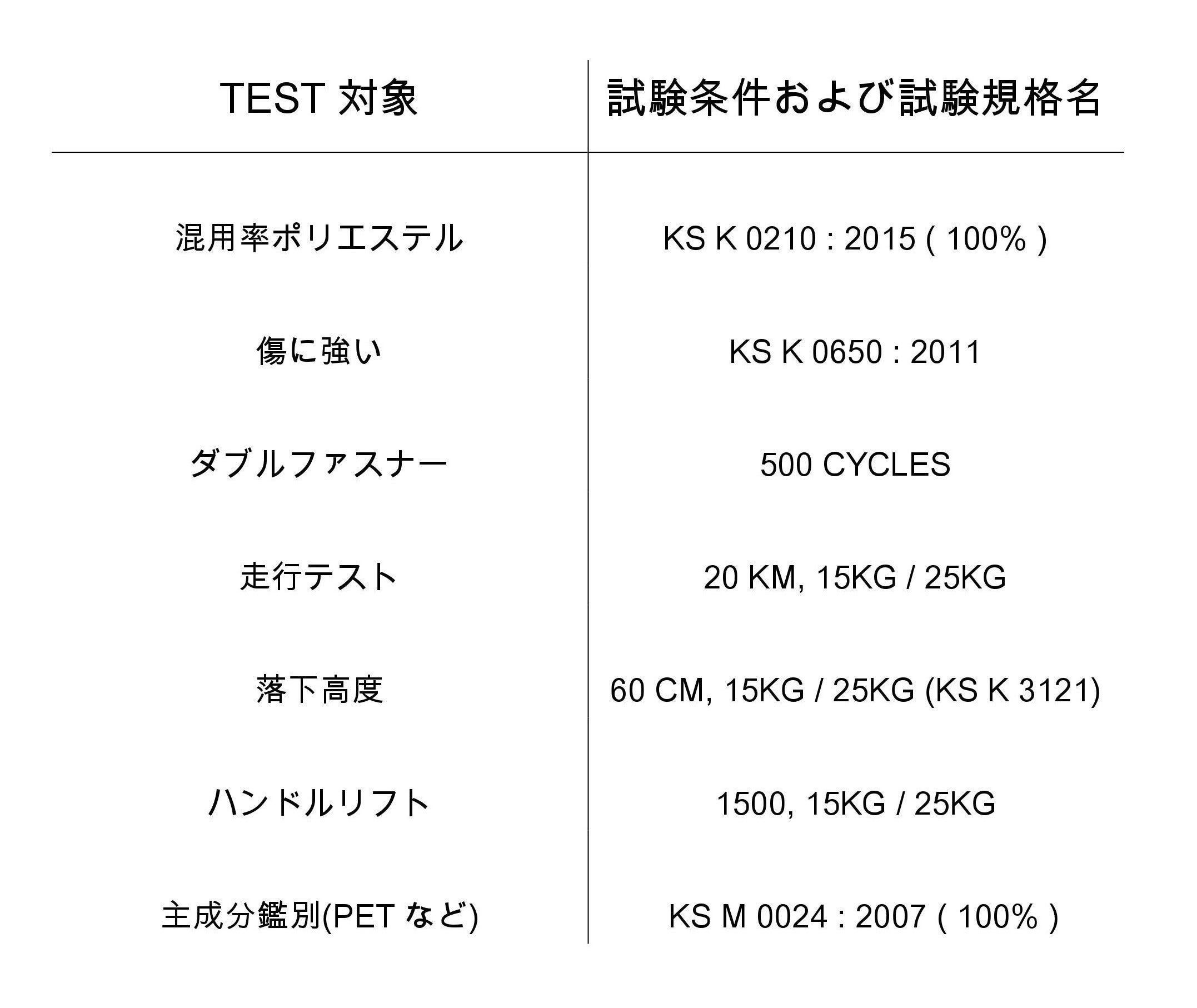 機内用:15キロ重量で1500回のライフテスト合格