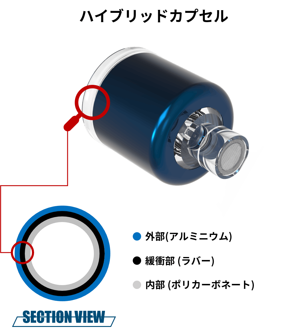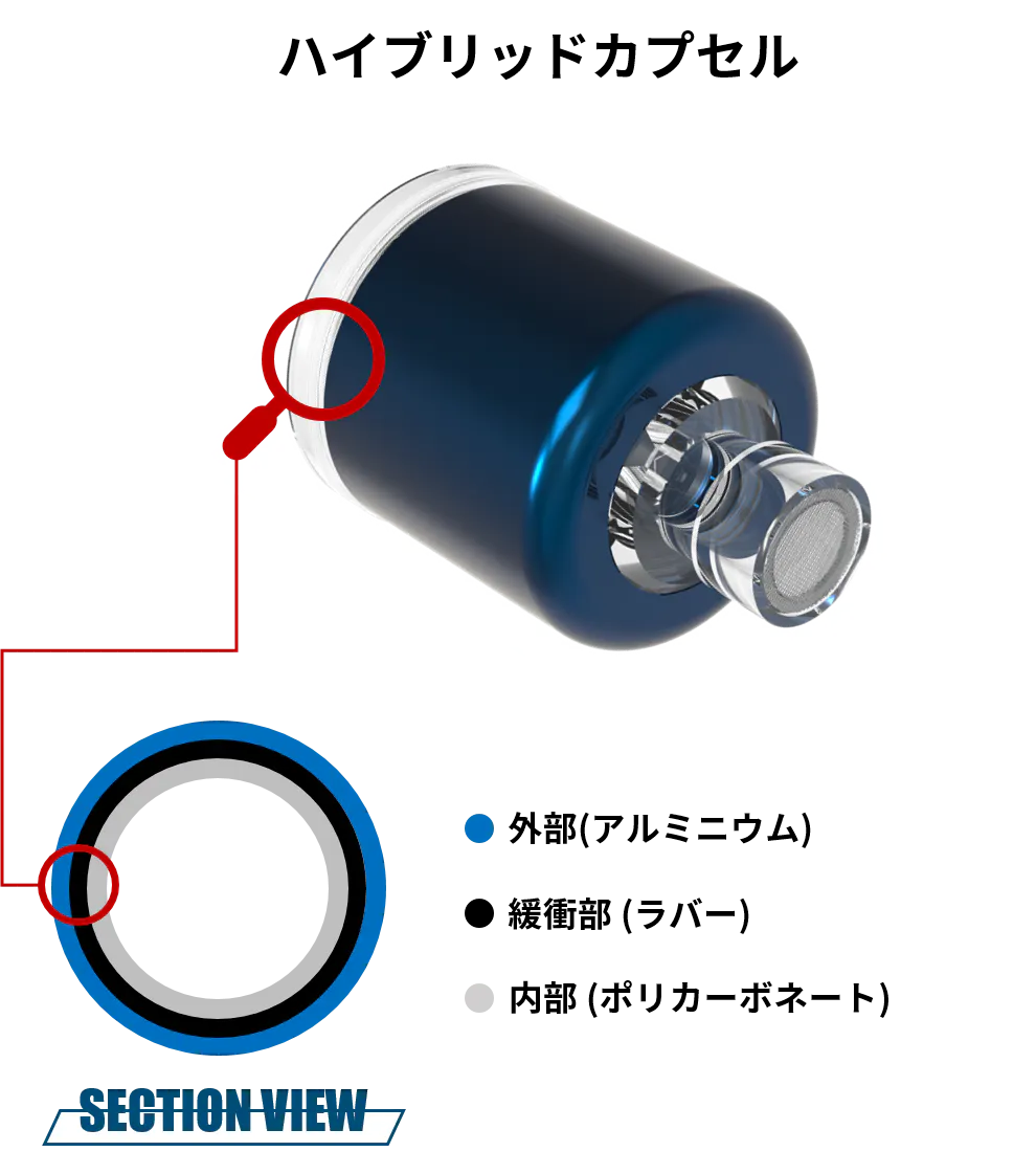 3層構造のデザインでカプセル内部の素材が共振を吸収するため、不要な振動が取り除かれて、低音と中音の明瞭さが向上します。