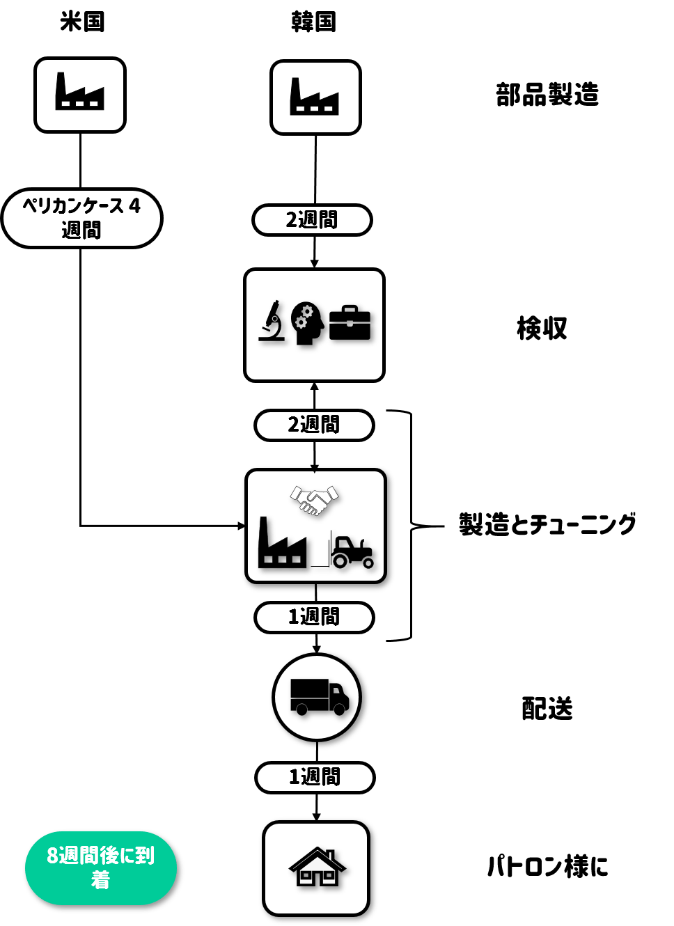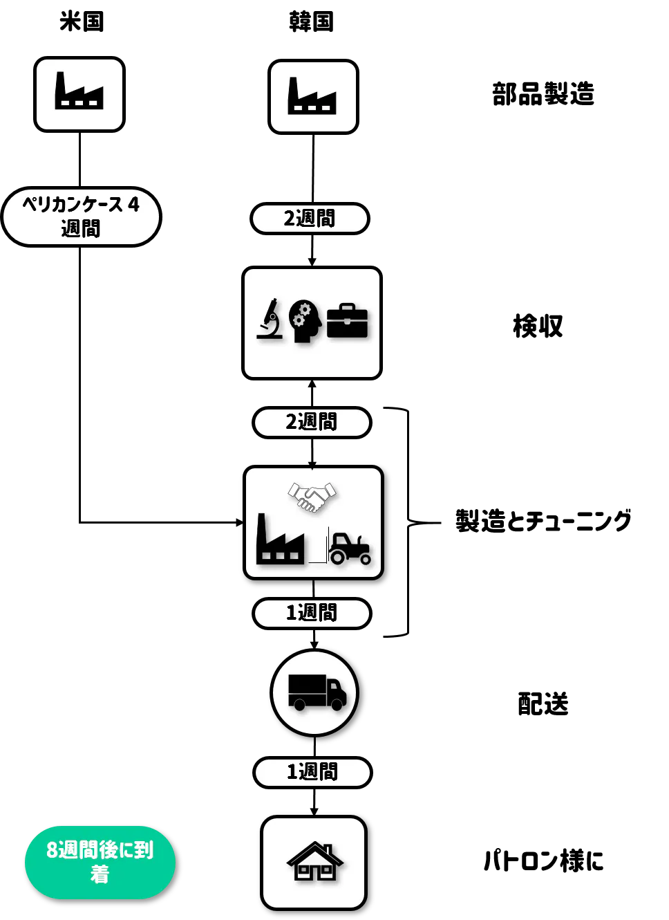 A. 韓国国内でデザイン、開発、製造、発送まで行っております。