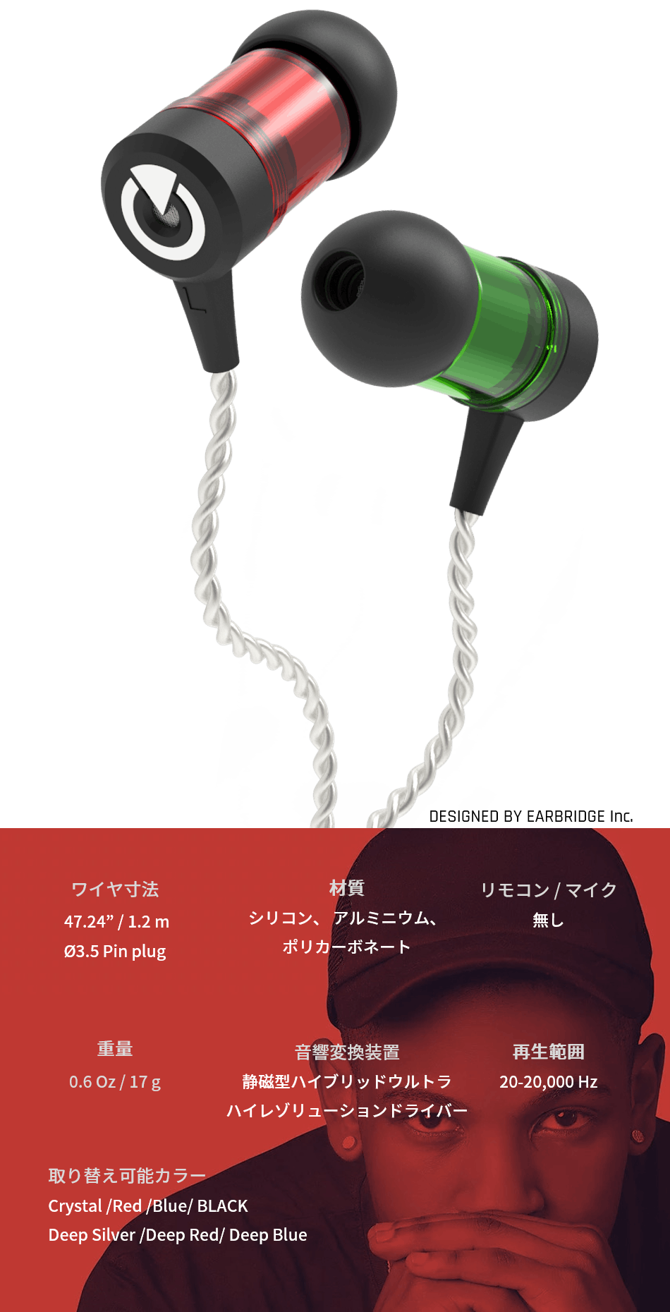 イヤーブリッジでは、個人の好みに合わせてレゴブロックのように色やサウンドパターン、デザインなどをDIYアレンジできるイヤホンと、ワンルームに最適なサウンド再生性能を発揮する超高解像度スピーカーの構造技術の大衆化を目指しています。