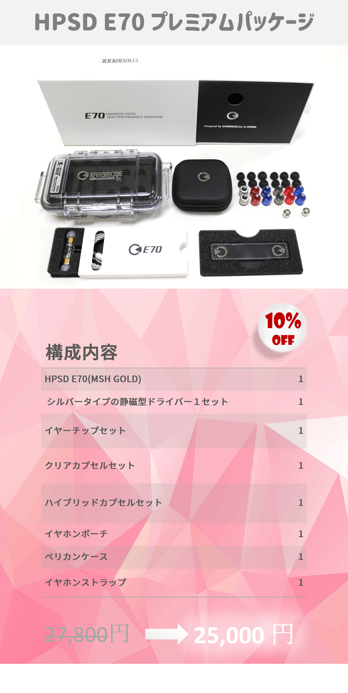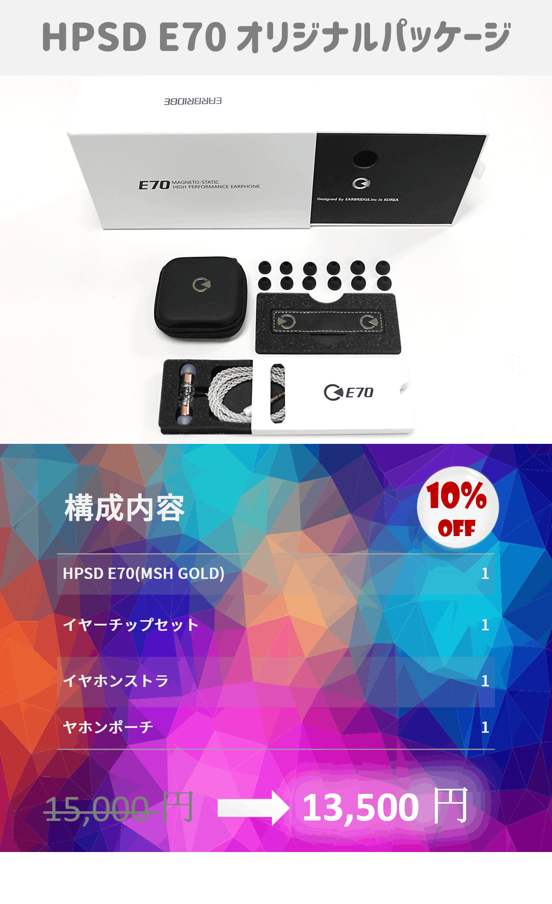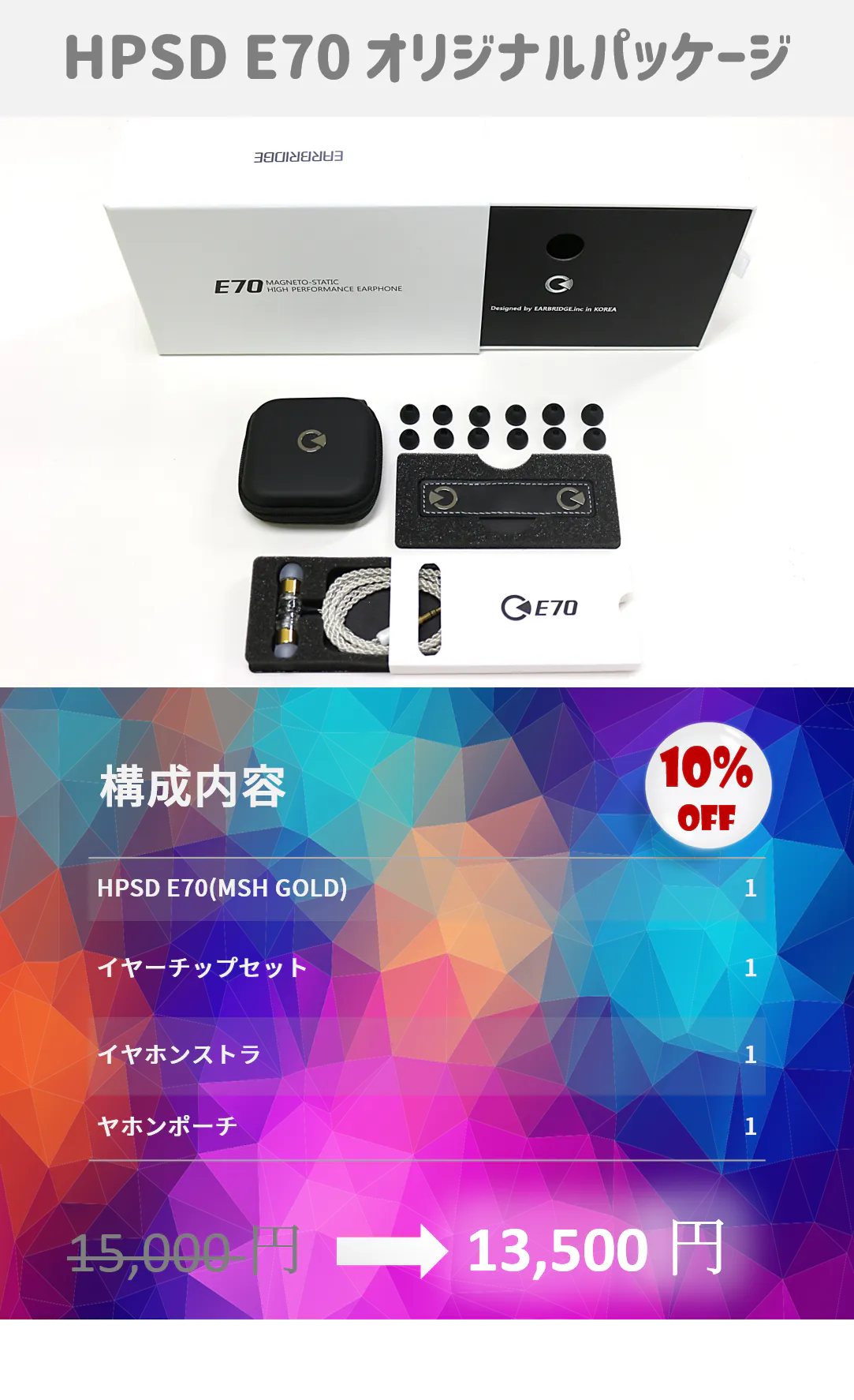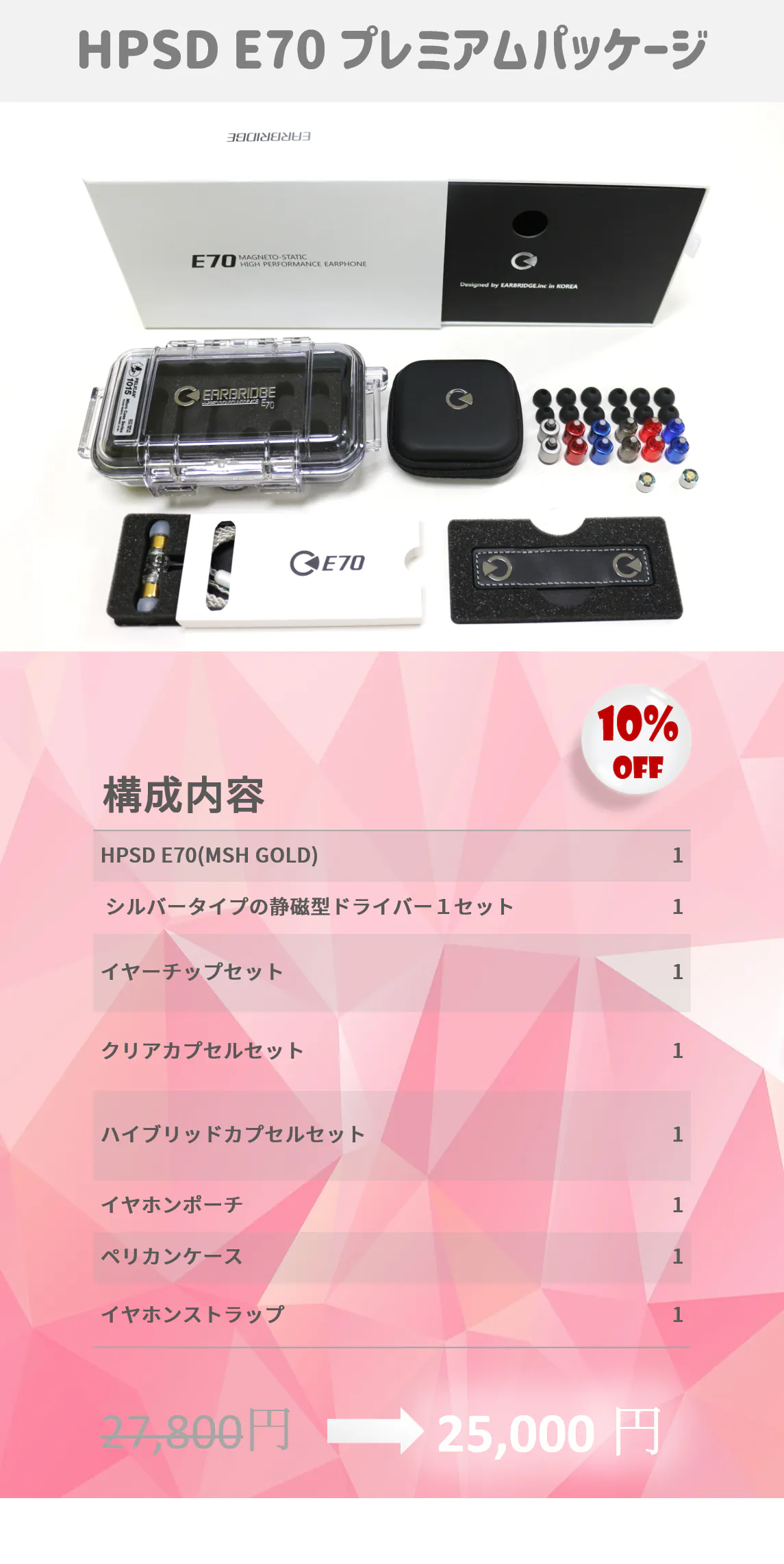 - オリジナルパッケージの構成内容では HPSD E70には MSH GOLD ドライバーを搭載しています。