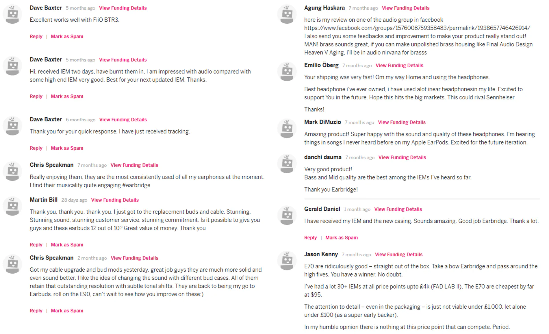 巨額の成功を収めた訳ではありませんが、イヤーブリッジにとっては極めて意義深いキャンペーンとなりました。日本、米国、タイ、インドネシア、韓国、中国、シンガポール、台湾、カナダ、スウェーデン、デンマーク、ドイツ、イギリス、イタリア、スロベニア、ニュージーランド、オーストラリアの計17か国のサポーターがHPSD E70に力を貸してくれました。