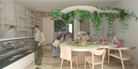 マイクロブタさんの故郷である“イギリスの田舎”と、目黒という街並みを融合した店舗イメージです。
