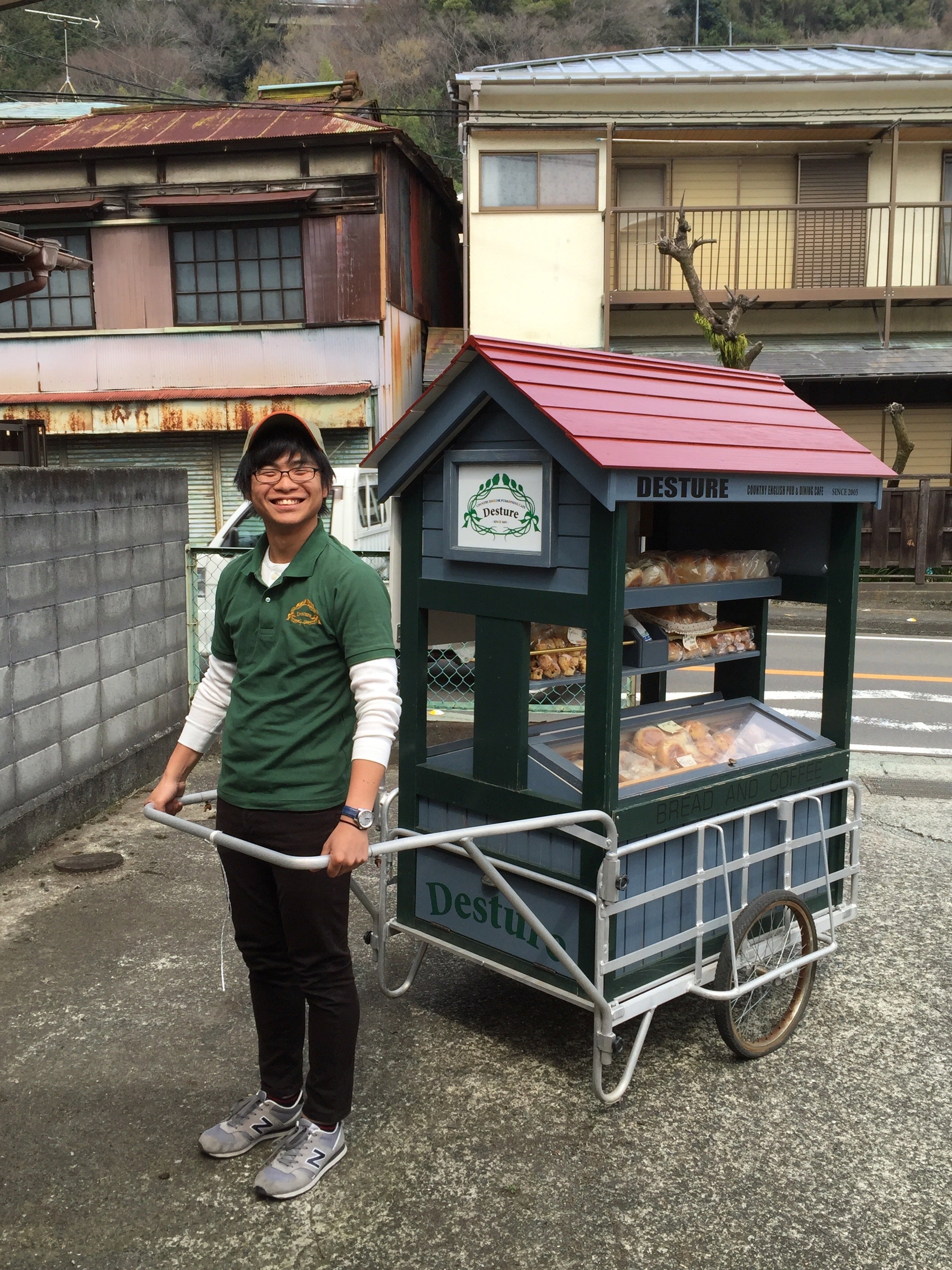 そのような状況の中、2015年6月に小田原銀座通りに現在の「Bread&English Pub Desture」を商店街を始め、多くの方々のご協力とご支援により、開店することが出来ました。2016年4月には、山北リヤカー店舗として、里山公園以来のリヤカー販売を復活させ、店長には、茅ヶ崎市にある文教大学国際学部卒業のスタッフ(現在の山北リヤカー店花坂店長)も加わり、少しづつ前進していきました。