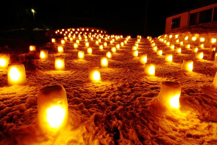 完成したキャンドルロードの美しさはそれはそれは素晴らしいもので、しんしんと真っ白な世界が、少しだけあたたかく、そしてとても美しく幻想的な世界へと変わります。