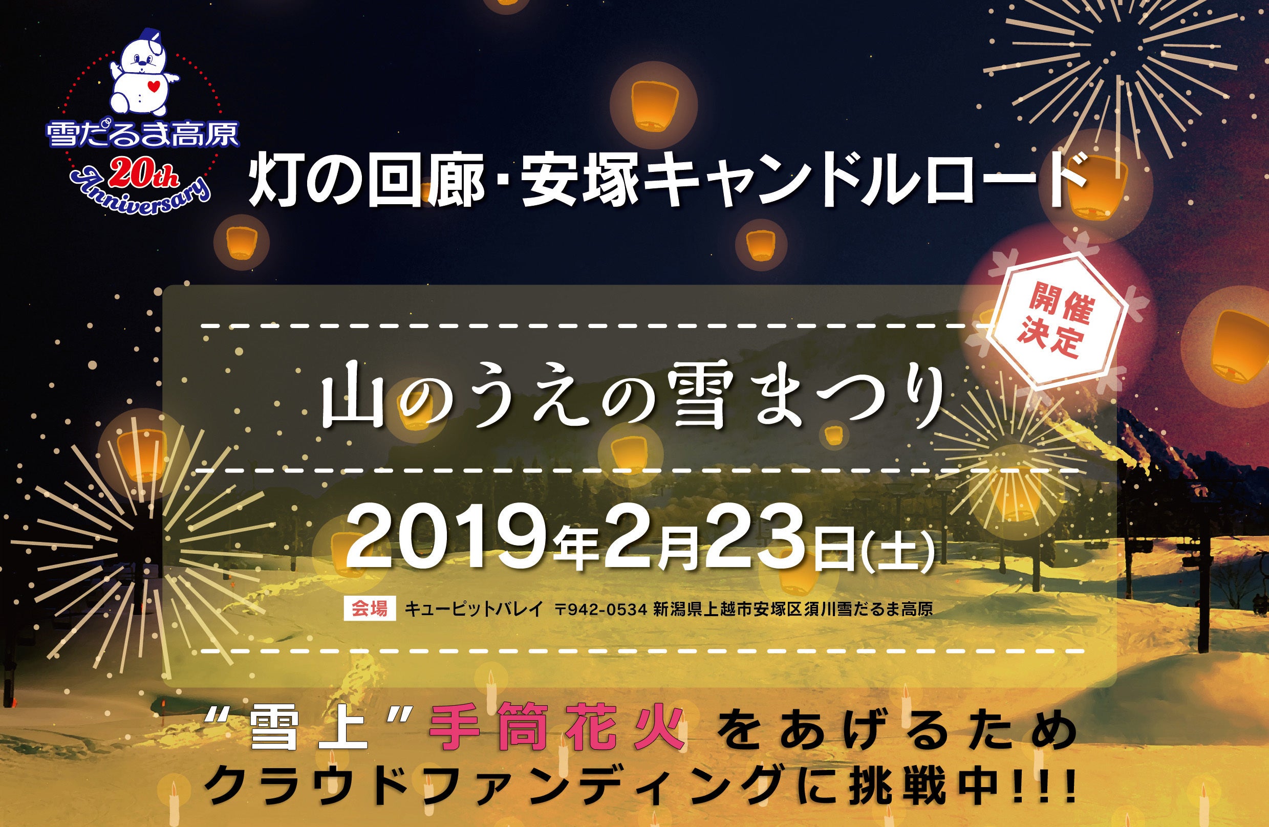 毎年2月の第4土曜日に開催される上越市安塚区の一大イベント『灯の回廊 〜安塚キャンドルロード〜』をさらに盛り上げるべく、たくさんの皆さんと特別な時間を過ごせるような『山のうえの雪まつり』を企画しています。