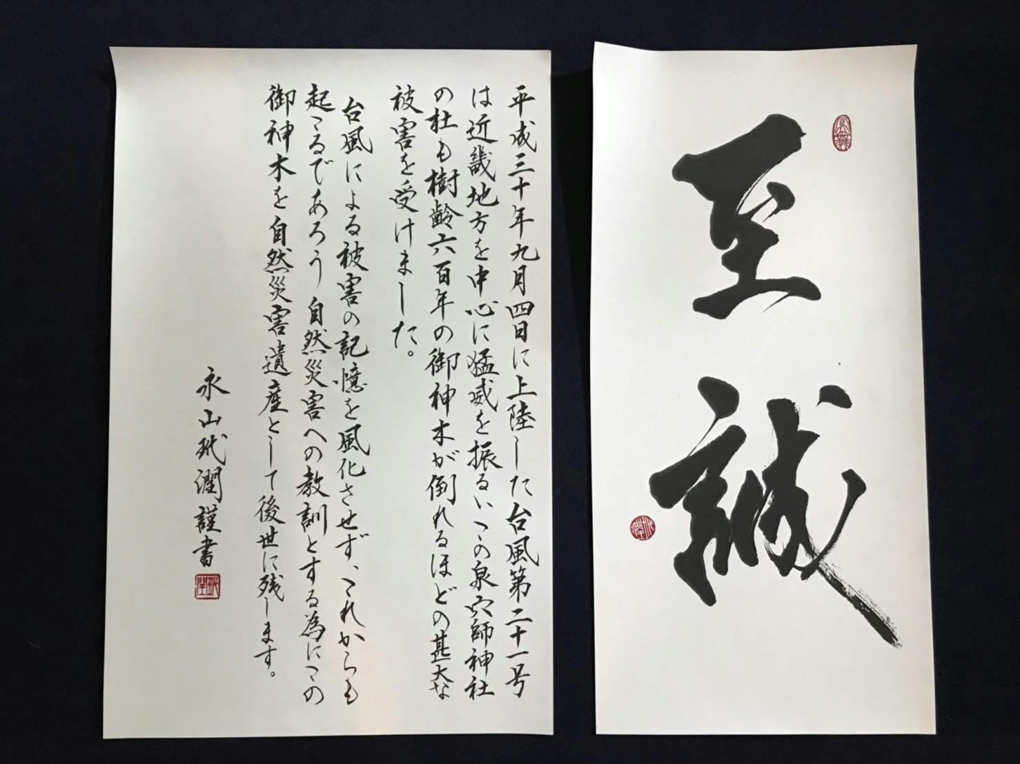 南出市長及び泉大津市職員のみなさま、また氏子である各役員の方々と共に熟考した結果、創建1350年の神社であるからこそお送りすることができるこちらを、リターンとしてご用意させて頂きました。