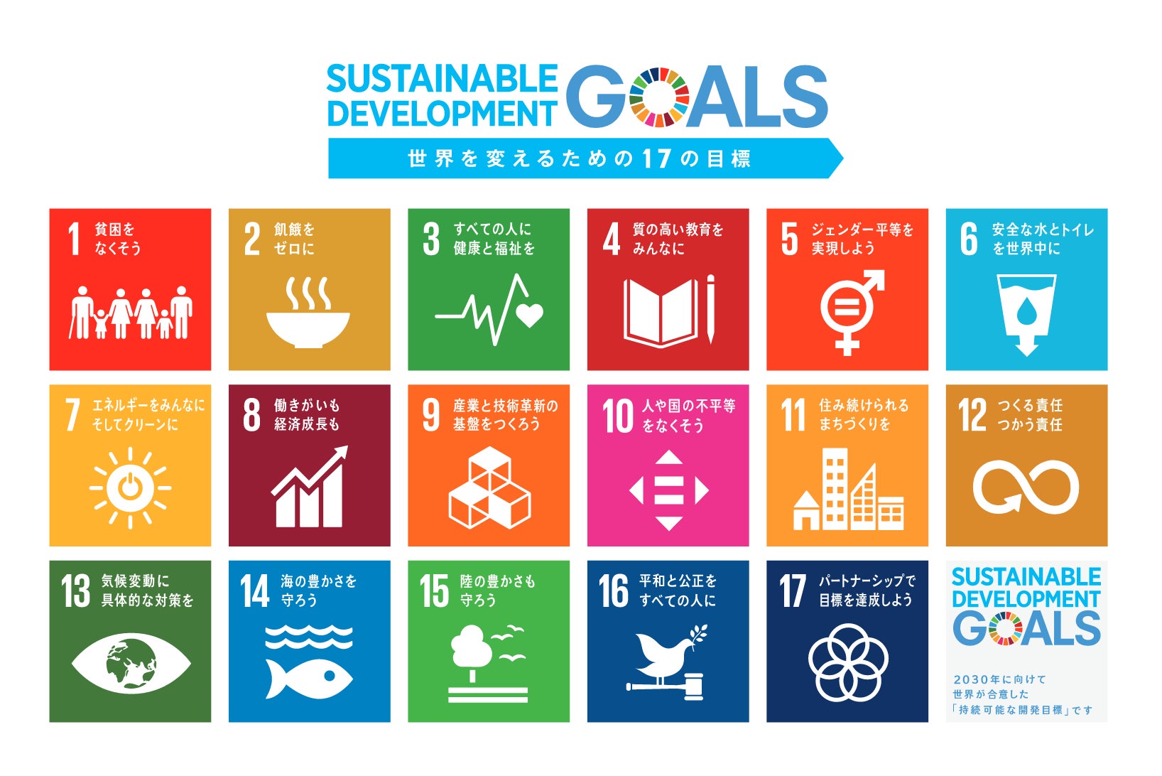 2015年にSDGs(持続可能な開発目標)が国連で採択されました。SDGsとは2030年までに持続可能な世界を実現するための17のゴールのことです。