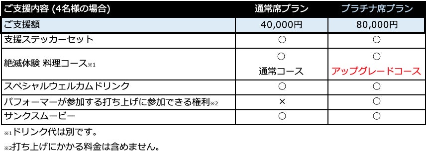 ※ご支援(ご予約)の状況で、お席が追加されることがございます。