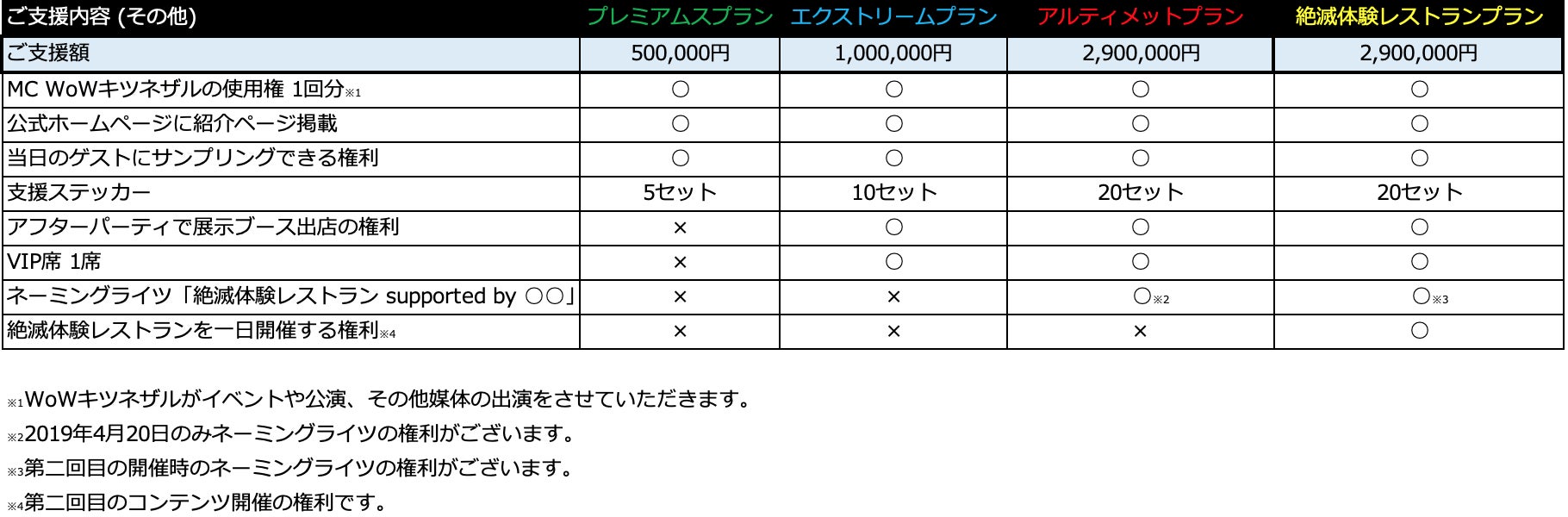 「絶滅体験レストラン」のチケットと、当日お越しいただけない方でも想いに賛同してくださる方にご支援いただけるリターンをご用意しました。