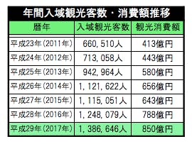 ↑ここ5、6年で観光客数、消費額は2倍以上となっており、市場規模・成長性共に十分であると考えられます。