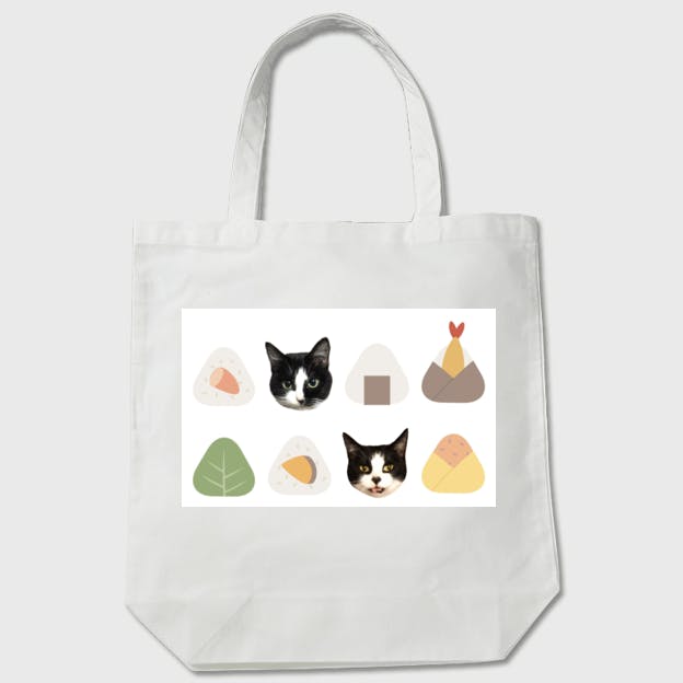 ちょっと変わった猫型の型に、おむすびさんのうまうま待ちの姿をオリジナルプリントで印刷しとじこめ、お届けいたします。