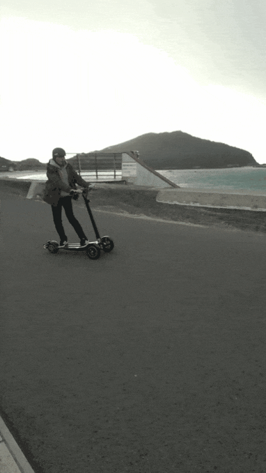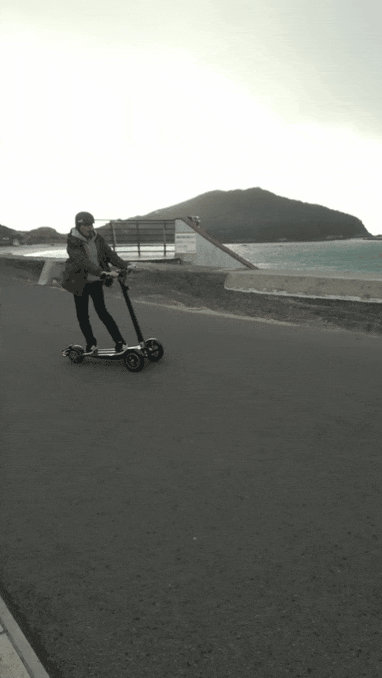 ※ Sunameri は一般的な電動キックボードとは全く違う動きをします。数分の練習を要しますが、慣れれば小柄な女性等でも自然と乗りこなせます。