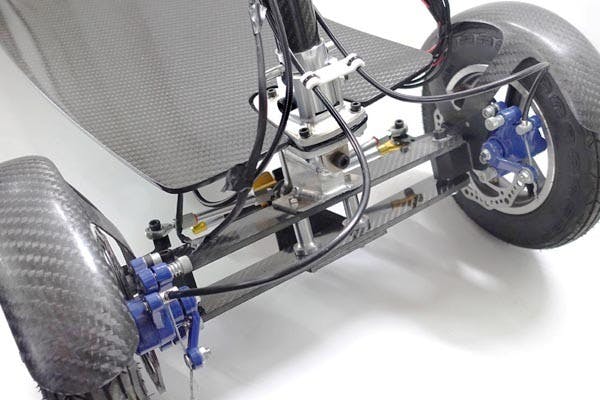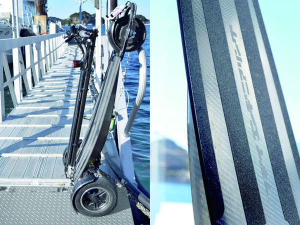 カーボンファイバーを使うことで総重量20kgと、強力なバッテリーとモーターを搭載しながらも非常に軽い乗り物を作ることが可能となりました。