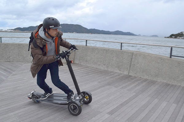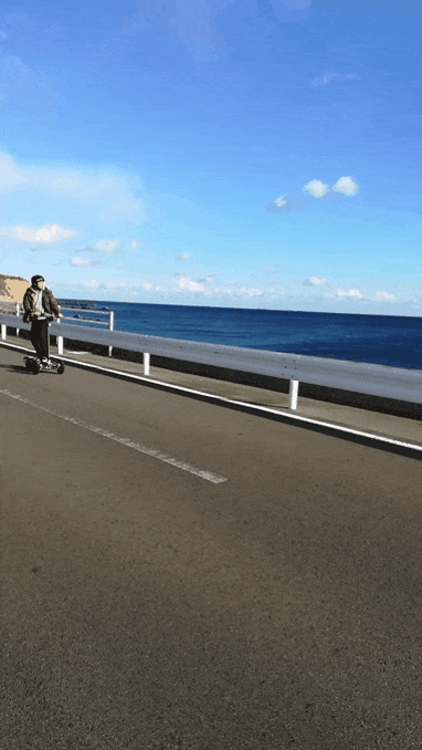 最高速度50kmという速さを担保しつつも、きちんと曲がり、止まるという基本要素に磨きをかけました。ハンドルを切るのではなく体重を掛けることで曲がる、他の乗り物にはない面白い動きを体験できます。前向き乗りから横向きへ練習して乗りこなしていってださい。まるで路上でサーフィンをしているような、スノーボードに乗っているような、不思議な感覚が味わえます。身体全体で操りながら道路を駆け抜ける楽しさを味わってください。