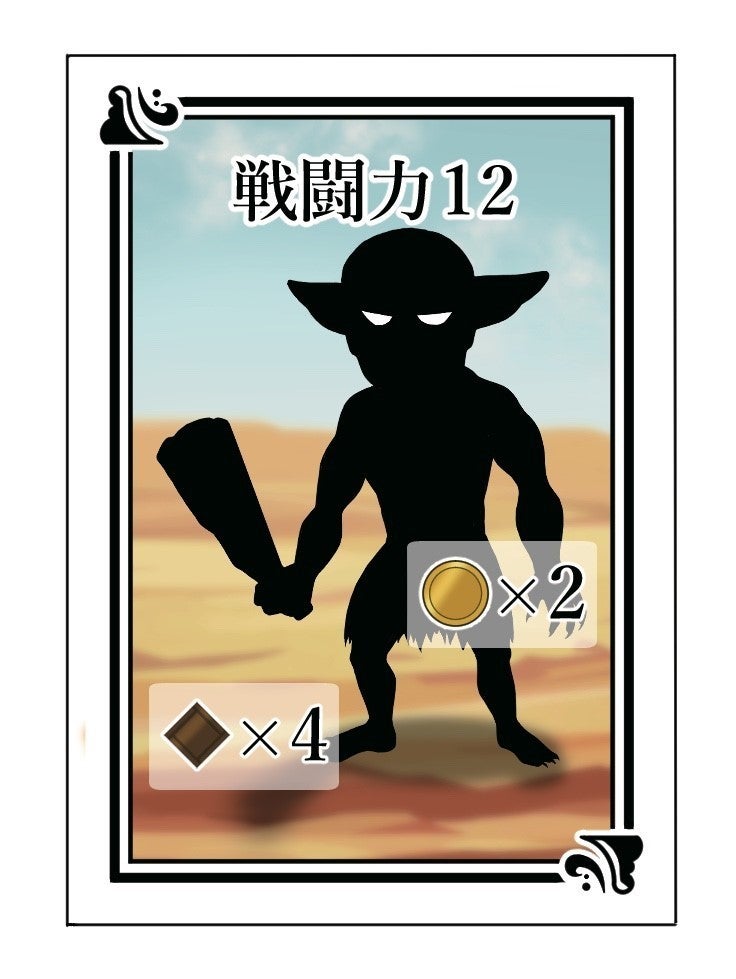 戦闘(Ⅱ)に入ったらモンスターカード(Ⅱ)の山札から1枚モンスターカードを引きましょう。引いたら下のモンスターが出てきました。