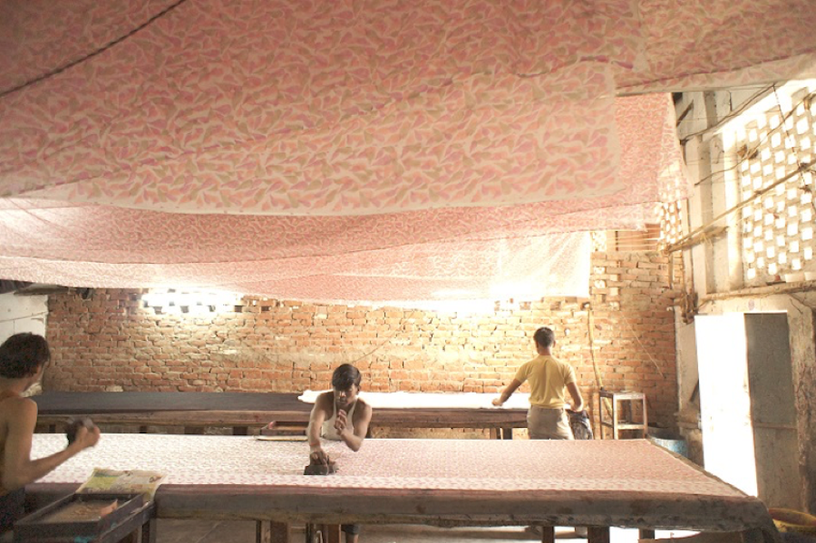 私が初めてインドに訪れたのは2008年でした。インドの北東部のジャイプールという場所の工房で、インドの伝統技法『木版プリント』に偶然出会いました。
