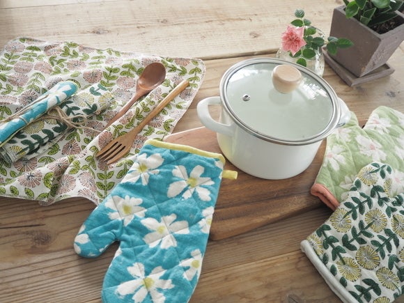 私にできることはないかを考えた中で、納期を設定しないで作れるものを作ろうと思いました。そこで、テキスタイル生地を使ったキッチンアイテムやベッドウェアなどを作ることになりました。
