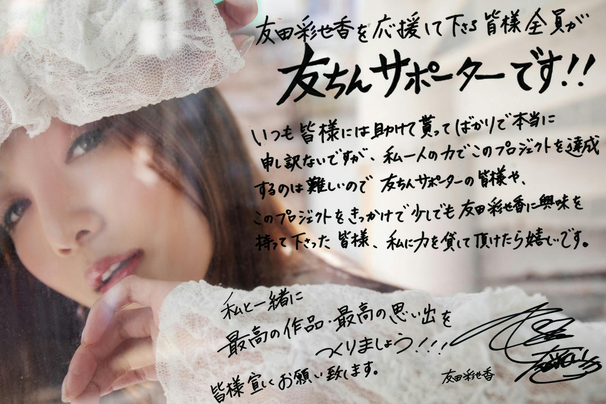 友田彩也香の10周年を記念して制作する写真集は最低80ページ以上を予定。友田彩也香として活動してきた全てを詰め込み、それを表現出来るような写真集を制作します。