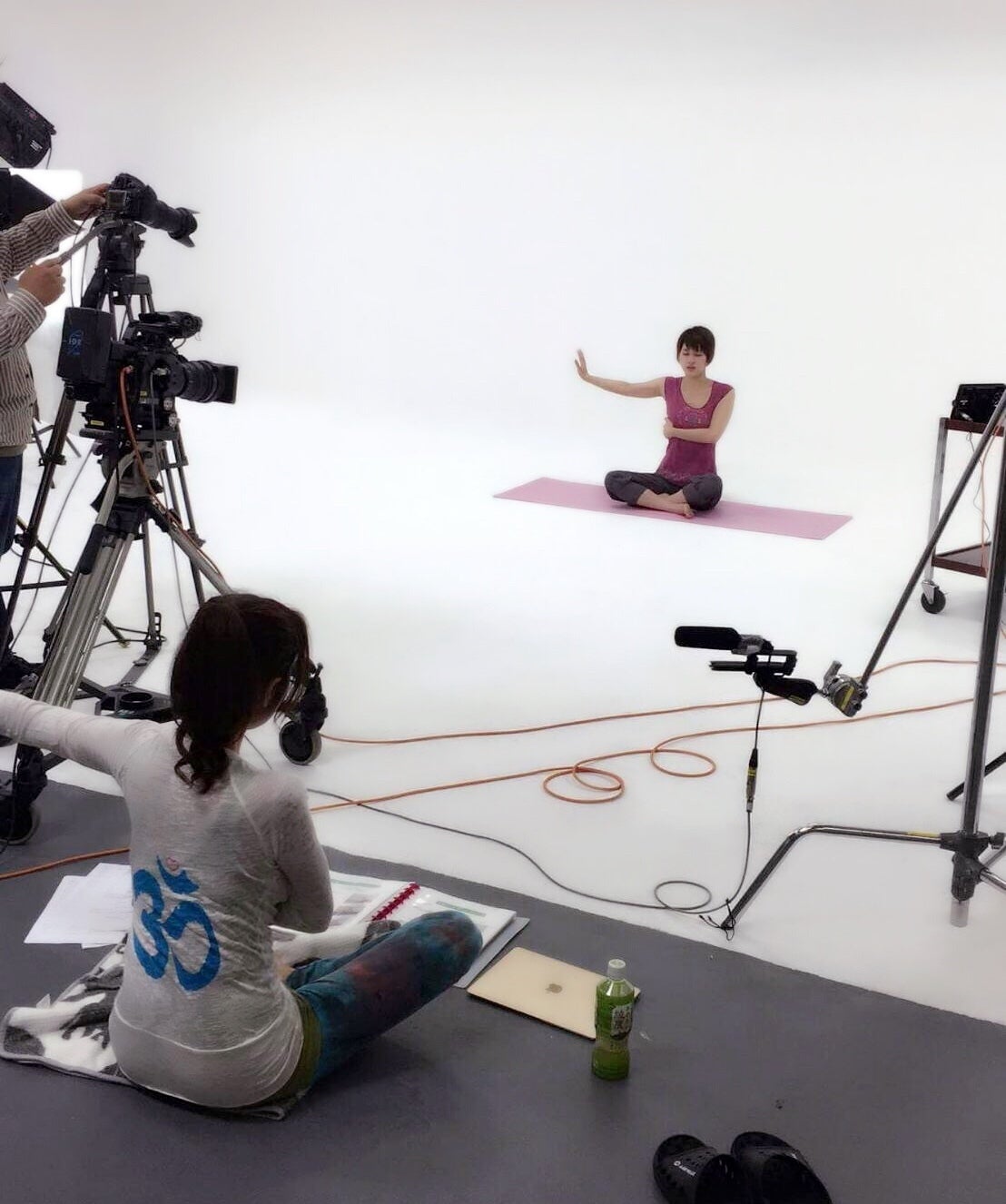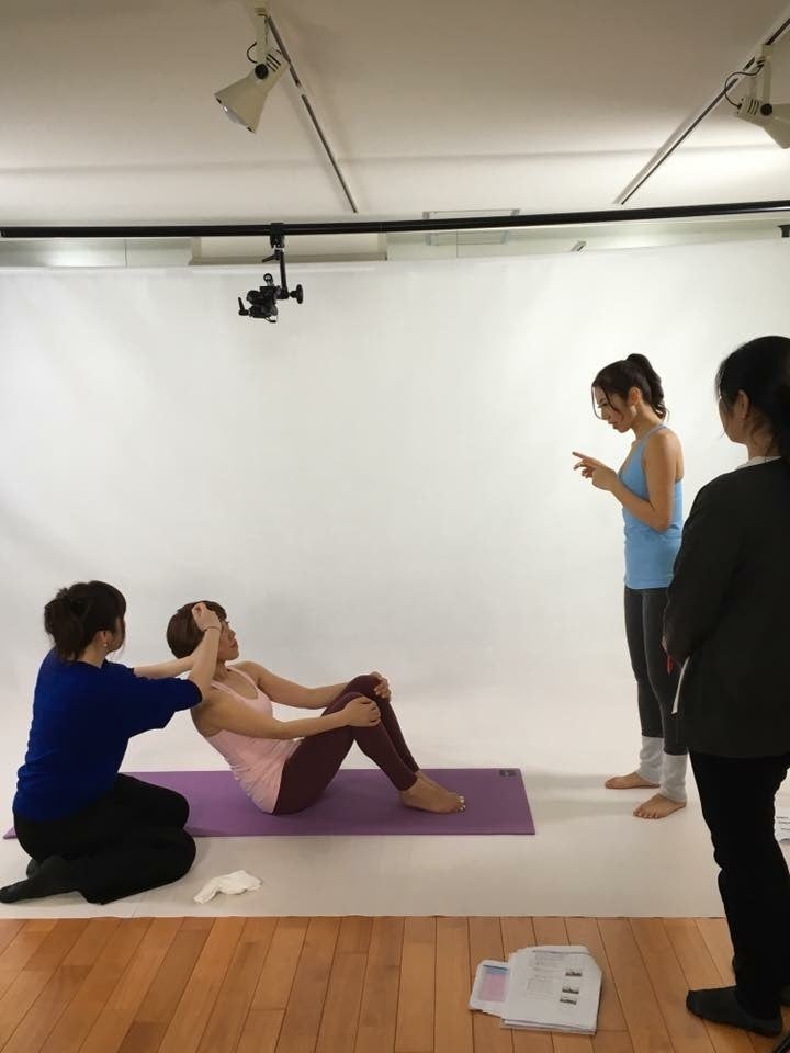 テキスト教材やDVDの撮影風景です。『ピラティス』は指導者育成コース。