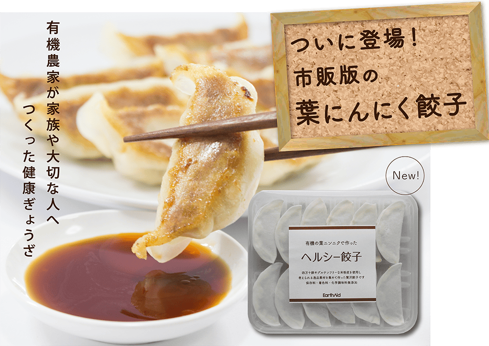 現在はホームページから購入いただくことが可能です。※アースエイドHP 葉ニンニク餃子販売ページ