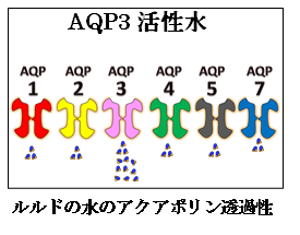 フランスのルルドの泉の水はアクアポリン3を良く通るAQP3活性水です。日本にもルルドの水と同じ性質の水があります。長野県分杭峠の零磁場の水や香川県の七宝山の湧水がそうでした。日本や世界の水を沢山調べた結果、AQP1を通りやすい水、AQP2、AQP3、AQP4、AQP5、AQP7を通りやすい水があることが分りました。2と3を通りやすい水、1と7を通りやすい水、1と4を通りやすい水などいろいろな水があります。