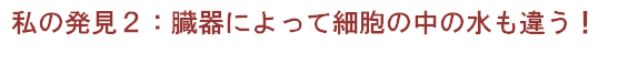 臓器ごとに異なるアクアポリンが分布していることは多くの人の研究で分かっていました。私の研究で臓器の細胞の中の水は臓器に分布しているアクアポリンと同じアクアポリンを通りやすい傾向がありました。つまり、臓器には好む水があり、その水で満たされているとその臓器特有の化学反応が活発なるなどの可能性が考えられます。