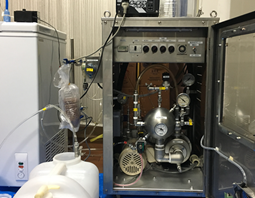 実験室のレベルでAQP4超透過性水を作ることに成功しました。しかし、工場レベルで成功させるにはさらなる工夫と資金が必要です。上の写真は特殊装置の一つで試作品です。工場レベルで機能させるには費用をかけて改造をしなければなりません。他にもいくつか候補になる装置を検討しています。工場レベルの課題は必ず成功させます。