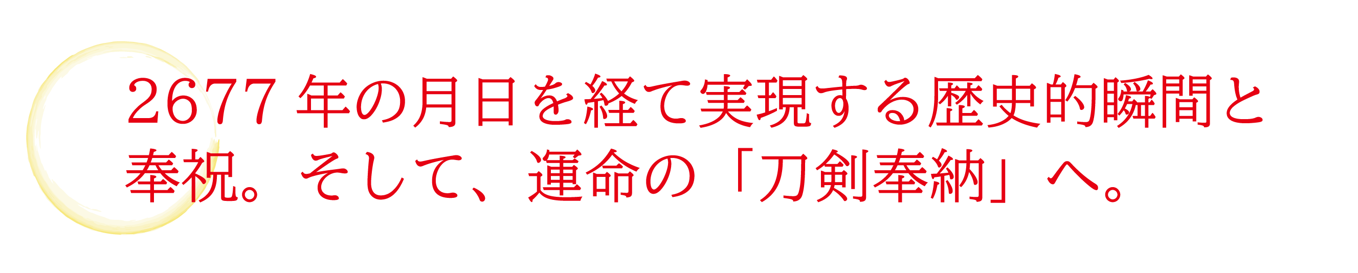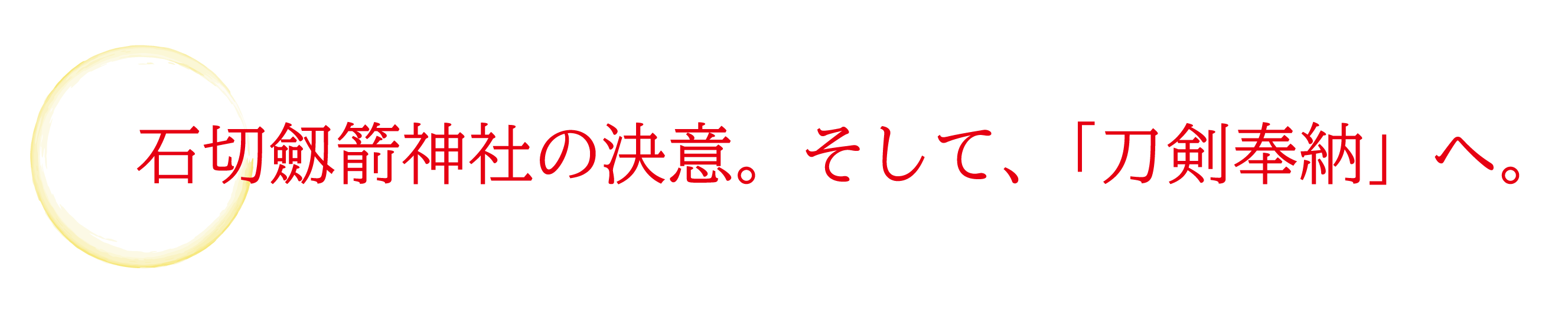 2677年の月日を経てなお石切劔箭神社では、本来奉納されているべき御祭神の佩刀(はいとう)が奉納されておりません。そこで、平成から新しい元号に変わる改元の奉祝として、さらに今回の改元は約200年前まで遡らなければ前例のないものである歴史的な唯一無二な節目であることから「刀剣奉納」を行うこととなりました。