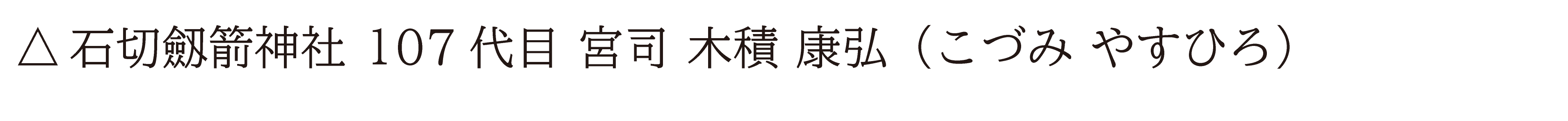 石切劔箭神社 107 代 宮司 木積 康弘