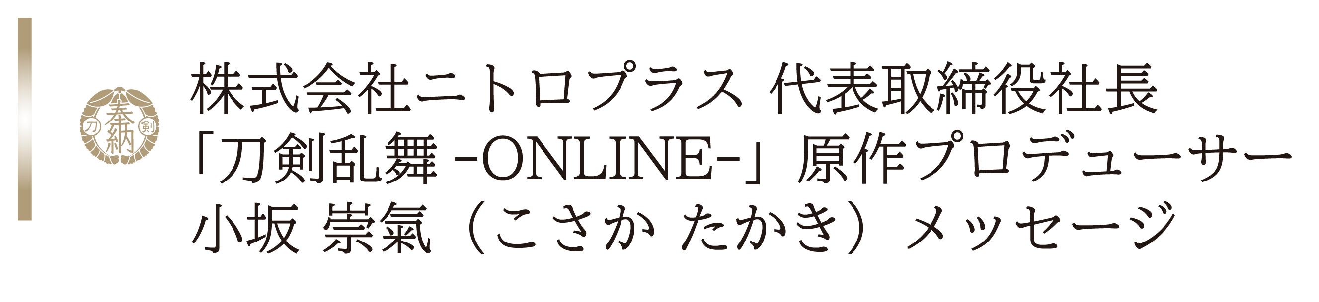 ゲームやアニメを制作している株式会社ニトロプラスの小坂 崇氣(こさか たかき)と申します。私は刀剣を題材にした「刀剣乱舞(とうけんらんぶ)-ONLINE-」というゲームの原作プロデューサーをしております。
