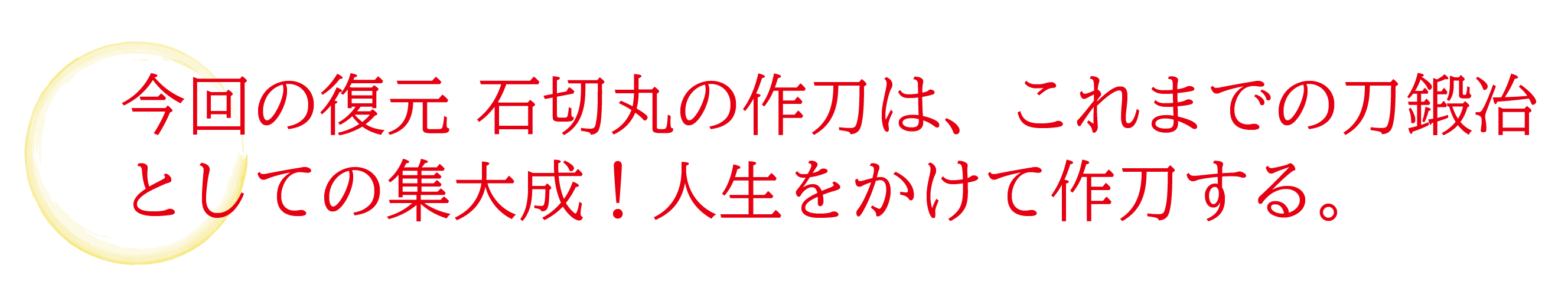 一振りの刀には研ぐことの出来る回数が決まっており、石切丸本歌も同様です。今回のプロジェクトは、石切丸本歌の一部を受け継ぎ、本来の姿で作刀された石切丸を奉納し、御祭神の佩刀(はいとう)とすることで石切丸を永遠に後世につないでいきたいと思っております。
