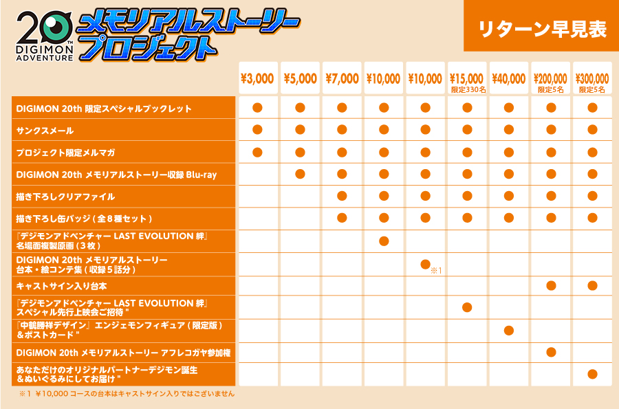 20周年を記念した劇場版「デジモンアドベンチャー LAST EVOLUTION 絆」の公開を控えていますが、“最後の物語(アドベンチャー)”を迎える今、1999年のスタートから今日までデジモンを応援してくださっている皆さまと一緒に20周年のメモリアルイヤーをさらに盛り上げていきたいという想いからクラウドファンディングのプロジェクトを通した“期間限定のファンクラブ”を実施いたします。