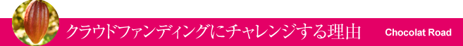 クラウドファンディングは大切な資金集めではありますが、それ以上に大切なことは、世の中への「チョコレートは誰もが好きな”スイーツ”という側面だけでなく、人と人をつなぐ架け橋になる存在」というメッセージをお届けしたいと思っています。そして、クラウドファンディングは小さな力を集めて、大きな力へと変え、世界中の人々を巻き込んでいくことができ、世界へそのメッセージを発信することができると信じています。。そのため、クラウドファンディングを選択いたしました。