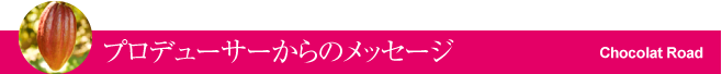3人のショコラティエは大変高い思想を持ったシェフたちでした。彼らに出会えたことは大変運が良かったと思います。撮影を進めていく中で、シェフたちはチョコレートを大切に「育てている」と実感しました。毎年自然環境によってカカオの味は変化し、私たちが食べているチョコレートは地球からのギフトだということに気付かされました。私は一消費者として、目の前のチョコレートが本当はたくさんの小さな物語たちの集合体であることを、映画製作を通じて体感してきました。その凝縮されたストーリーが「Chocolat Road」です。チョコレート好きがさらにチョコレート好きになるそんな映画を作り上げていきたい。そんな思いで制作を行っています。
