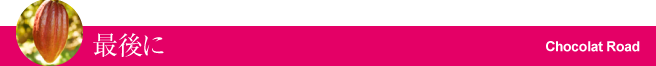 ところで近年、チョコレートとカカオの業界の進化はますます早くなっています。ショコラティエ達は、これらの背景から学ぶ必要があります。そして新しい感性を磨き、今までと違う市場との関わり合い方を同時に模索しなければなりません。カカオの起源への旅は、ショコラティエに新たなインスピレーションをもたらし、ますます刺激的なものになっていくことでしょう。もう一方では、ショコラティエたちは、新作のための最高の食材を選ばなければなりません。この選択はいつも最高のカカオから始まります。最高のカカオとは、ただのクオリティ以上であるという意味です。その条件とは製品に隠れた触れられない価値を含んでいます。チョコレートは贅沢なものですが、農家の汗と涙が貴重な豆を生産しているという、業界の過酷さ苦労という現実が隠れてしまっているのです。