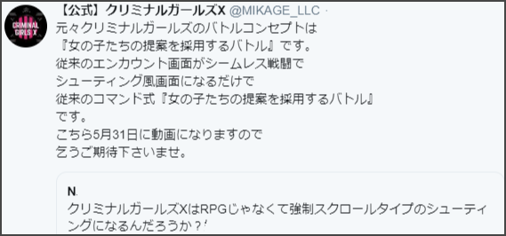 「クリミナルガールズX公式Twitter」 https://twitter.com/MIKAGE_LLC