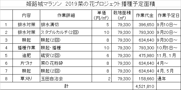 そんな中、コース周辺の田んぼを使って「菜の花でおもてなし!」が出来ないものかと始まったのが「菜の花プロジェクト」です。この姫路城マラソン菜の花プロジェクトは、姫路城マラソンが存続する限り実施したいと考えています。
