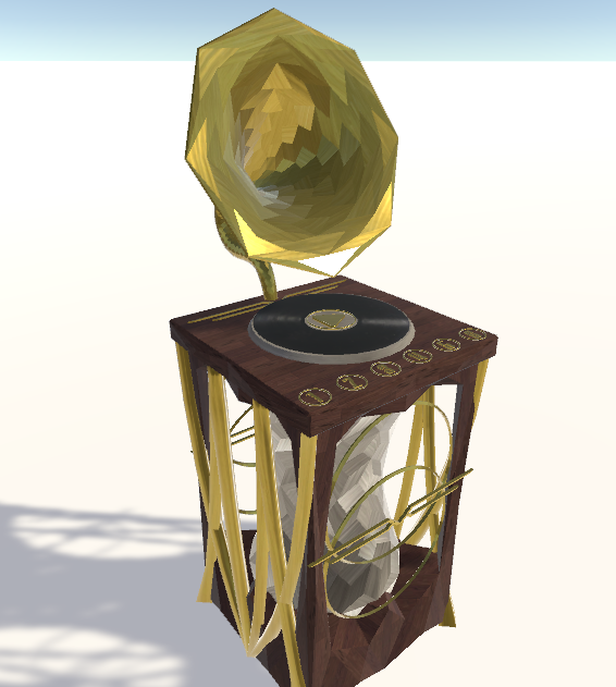 VR空間ではVRChatで使うことが出来るジュークボックスギミック付きの蓄音機モデル(Prefab)がリターンされる新プランです!