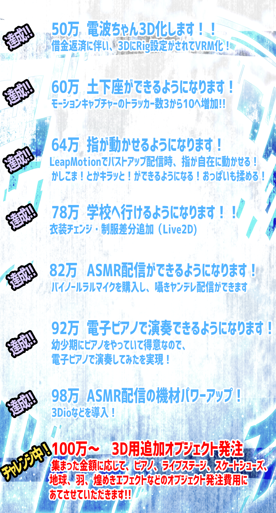 100万より先、超過分は集まった金額に応じて、すべて3Dのオブジェクト発注費用にあてたいとおもいます!!!!
