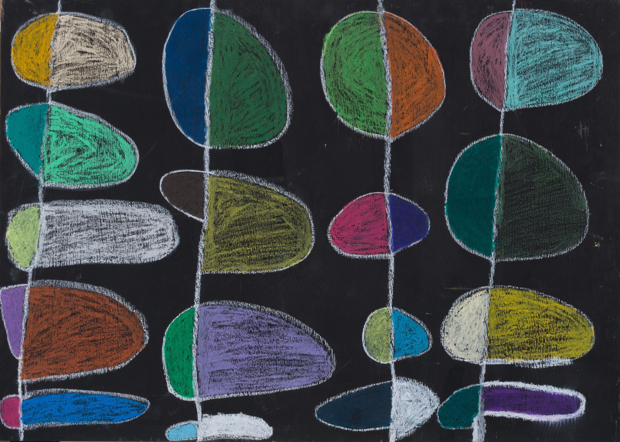 現在グループホームで過ごしている渡邉。作品の多くは障がい者支援施設・あさかあすなろ荘に入所していたときに描かれたものである。代表作のひとつは、四つ足の生き物らしきものたちである。安積愛育園の創作プロジェクト「unico(ウーニコ)」のロゴマークにもなっており、本人曰くこれは「ねこ」とのこと。時に一筆書きで、一気に伸びやかに描かれる足と尻尾。そして何匹もが並んでこちらを向いているさまは、不思議なリズムと可笑しさで、私たちの目を惹きつける。