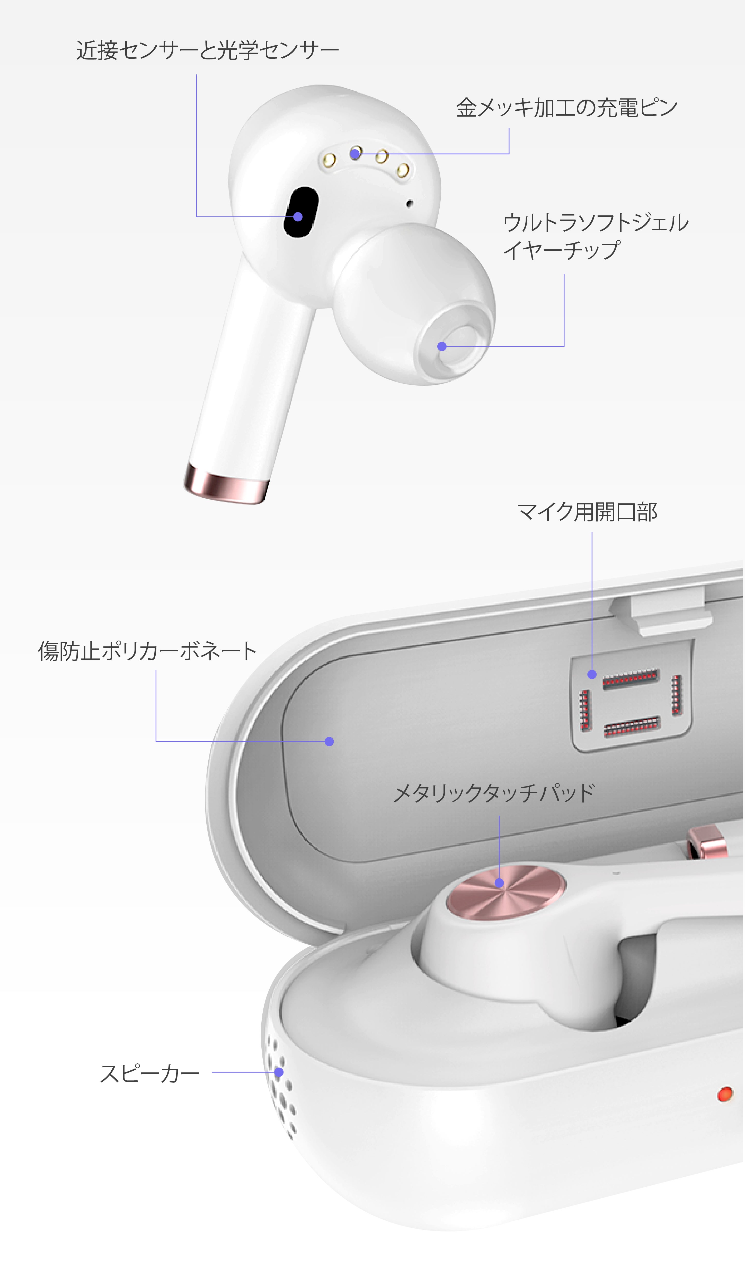 近接センサーと光学センサーが組み合わされていて、イヤフォンが耳に装着されているのか外しているのかを正確に検出できます。