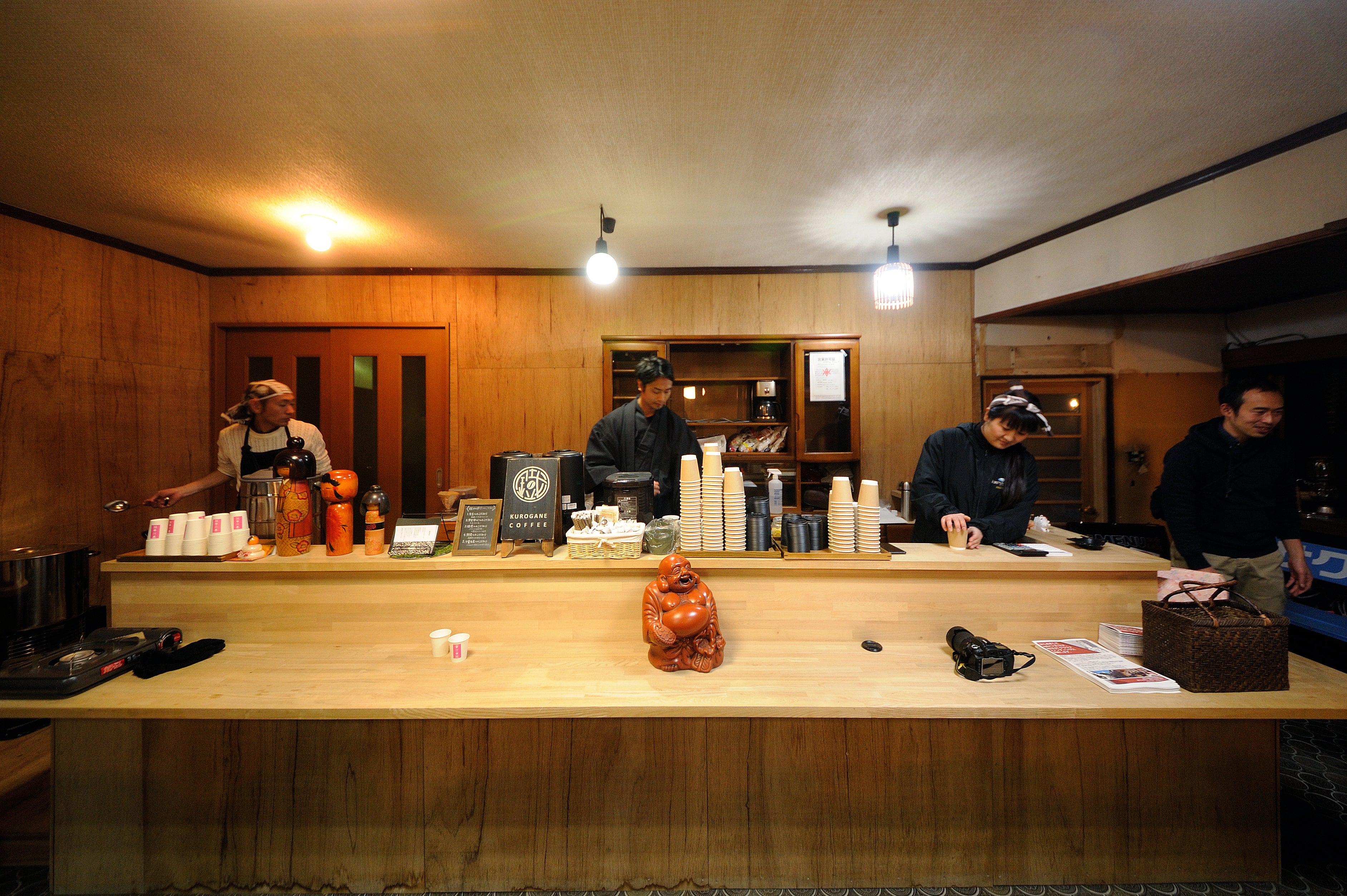 今年のお正月には「プレプレオープン」と銘打って、大晦日の夜から元日のお昼まで、カフェ予定の元お蕎麦屋さんにこたつなどを持ち込ませてもらい、コーヒーやレモネード、地元の醸造会社の「甘糀」(甘酒)などを提供。若い世代を中心ににぎわう空間を見て、さらにカフェに人が集うイメージが湧いてきました。