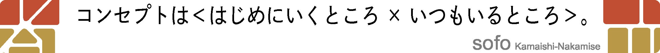 赭は仲見世の屋根の赤土の色で万葉集の時代からの伝統的な色。観音様と釜石大観音仲見世商店街が作り出す景観を大切にし創建当時の思いを受け継ぎたいという思いで名づけました。さらに倉庫街をリノベーションしニューヨークの新しい文化の発信地となったSoHoからも由来を取っています。